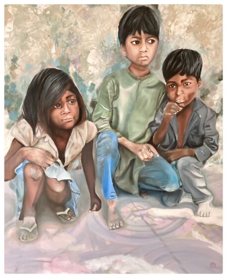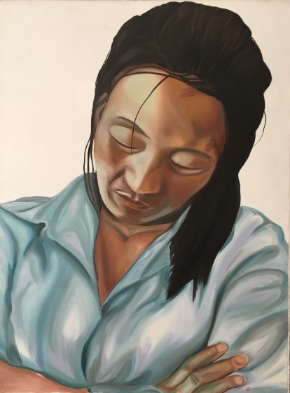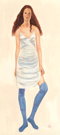 “…Intrisa di chiarore tropicale, una candida folla volge lo sguardo a un evento che si può immaginare prodigioso, tanto da calamitare ogni attenzione: uomini dalla pelle morbidamente ambrata e lucidi capelli corvini, su cui piovono riflessi argentei e si avvolgono nivee bende. La pennellata attenta rende con efficacia ogni riverbero di luce che si trasforma in tessuti, incarnato, petalo di fiore. Tra un pullulare di profili e nuche, il riguardante è sommessamente introdotto nello spazio dell’avvenimento, alle spalle della figura maschile, in primo piano, giovane e vitale, intenta a fissare, con gli altri, il portento. Unica a sfuggire all’omologazione degli animi appare la donna al suo fianco, i capelli raccolti da un nastro dalle inattese note cromatiche, a contrasto con il nitore imperante, ma in sintonia con le sue movenze. E’ la leggera torsione del collo a tradire un pensiero eccentrico che vaga altrove, a rivelare lo sguardo rivolto a un diverso orizzonte, non imposto dalle circostanze, ma scelto dalla propria autonoma determinazione. Non femminile distrazione di un animo sognante, ma consapevole volontà di fuggire ogni vano, ingannevole incanto…” [Nicoletta Frapiccini]
